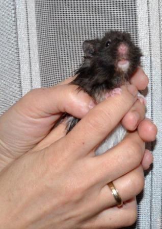 Das ist Keks ein Teddyhamster in der Farbe black banded.